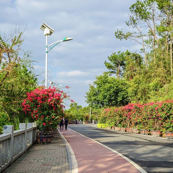 一路绿树成荫,气候好,成片的三角梅怒放着。