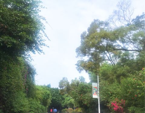 常规景点对我已不具吸引力,反而更想感受本地人的生活。一路绿树成荫,气候好,成片的三角梅怒放着下午百无聊赖,刚住到山上,不想下凡(咦?),又想走走。