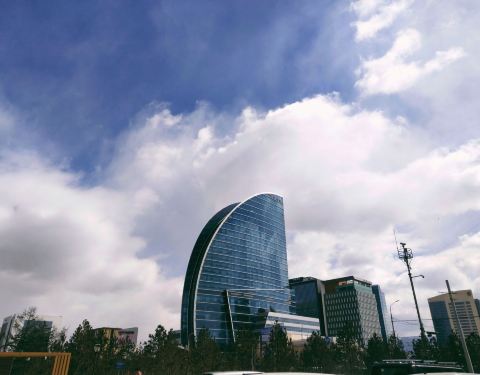蒙古国最大的最高端的一座酒店和建筑,蓝天塔因为淘外表的玻璃颜色而设计的,也是这个内陆国家很重要的一个现代化建筑,顶部有一个酒吧,可以在晚上看到夜景的哦。