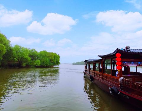 太湖图影生态湿地文化园乘坐木质轮渡感受的轮渡游泛于湖上,水天一色,江南之美,随手拍都可以拍出大片的既视感,微风飘动杨柳低垂,感受水乡秀美。