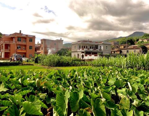 樟脚村 名字的由来源自于村口那株700岁的大 樟树 ,爬到树上,整个村子如同在 樟树 脚下。当然,不管是你自己还是村里人都不希望有人爬上去吧,况且来 樟脚村 的人更多的是冲着那五色石头磊成的古民居群来的。因为这些彩色石头, 樟脚村 也被称为“油画村”。进到村里遇到的一件麻烦事就是没地方停车,很多村民把他们家的院子开放给游客,每部车收费10元,往上开了一段确信无处停车之后也只能从了这些揽客的阿婆了。面对着大 樟树 ,左边是田野步道,一派田园景象,若不是天气炎热,走走也是不错的。而右边的小巷子穿进去找到一片甘蔗田,甘蔗田往后便见着那些石头房子了。整个 樟脚村 的面积其实不大,一圈下来20分钟便可以走完,这些石头民居比较特别的一点就是依山而建,错落有致,似乎在建筑上并没有什么讲究,朝向也很随意,一户人家建好之后,另一户人家的大门可能就在你的屋顶或阳台上,立体感很强烈,加上偶尔探出的藤蔓,色彩很协调,拍出来的照片自然也好看。如今的 樟脚村 已经把这些老建筑的居民迁出,房屋腾空重新修缮了,现在每个房屋都可以随意进入参观。有茶室入驻,走累的话可以停下来喝杯野茶,逗逗猫。村民还是比较热情的,会拿出自家种植的香蕉或龙眼售卖,阿婆也不例外。后山的手工豆皮据说挺有名,一路沿着路标箭头寻去,竟越走越慌,村民说还得走上一段,作罢。仔细对比以前的照片,现在的 樟脚村 四周多了许多现代化的房屋,据说村民有了钱,便推倒一些石 头屋 也起了高楼,这些现代化元素不时就会闯进镜头和视线,破坏了原有的意境,有点可惜,而空荡荡的古民居群似乎也少了一些生活的气息。