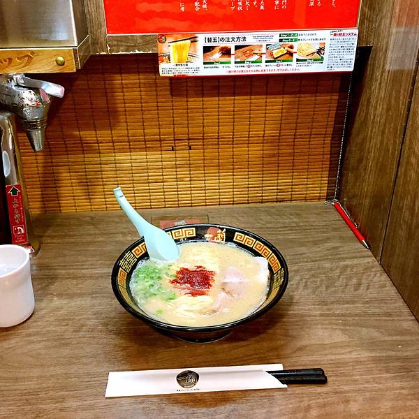 浓厚的汤底和独特的个室座位吸引了很多的食客。一蘭拉面的故乡是博多,博多拉面有个特点是细面,所以点餐的时候可以选择硬一点的面才会比较好吃。点餐前会给一张调查表给你填,细致到辣椒的辣度、面的硬度、葱的大小…
