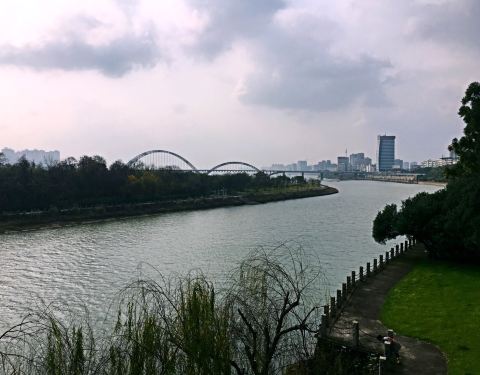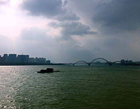 我从远处望去,白鹭洲书院似一片绿叶,静浮在涛波之上。据说,每遇洪水,城里尽淹,唯白鹭洲不殁。我又换个角度看,它则变成了一个织布的梭子,任凭两侧滔滔的赣江水夹腰而过。
