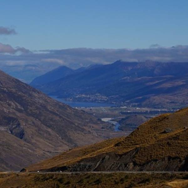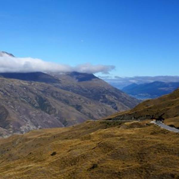 从Wanaka出发,经过卡德罗纳小镇Cardrona,进入Crown Range Road。公路围绕Mt. Cardrona而建,翻山而过后重新进入6号公路,可抵达箭镇及皇后镇。Wanaka--Cardrona Valley Rd--Crown Range Road--No.6 Hwy--Queenstown
