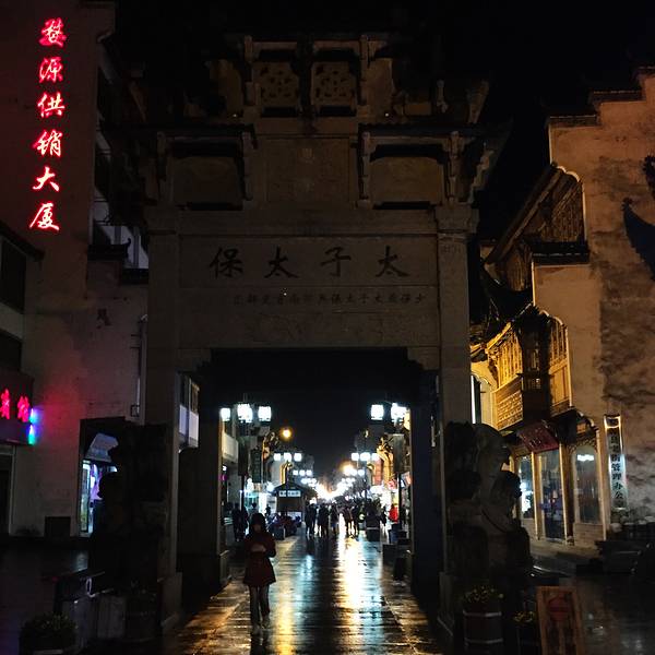 最后最后,景点关闭啦。我们就准备回去了。就让师傅带我们去婺源晚上最热闹的地方,师傅就说带我们去步行街。~去步行街的路上,有一段蛮偏僻的。!!!当时我和我的小伙伴就觉得师傅怎么越走越偏僻,人越来越少...