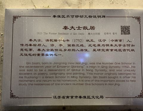 路过很多次居然没在意过这里还有个秦状元府,秦大士是乾隆时期的状元,江宁(今南京)人,曾任侍讲...