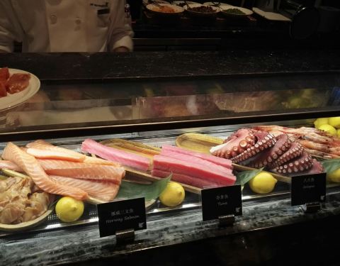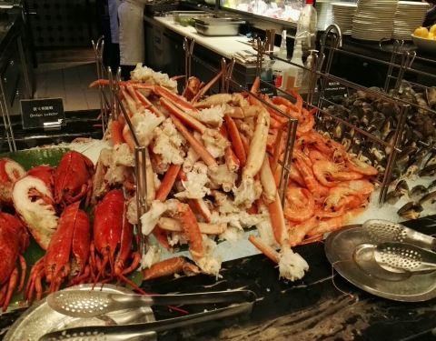 澳门jw 万豪的自助餐,不是特别的出名,主要人少,没有预约也可以吃到,里面的海鲜还不错,有蟹腿还有三文鱼金枪鱼之类的,生蚝没有,有点可惜。
