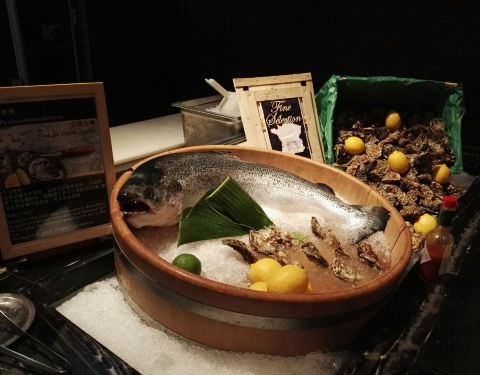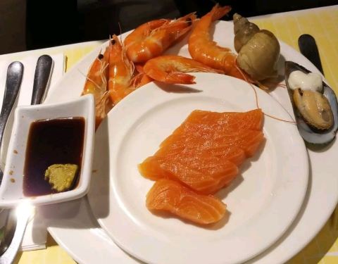 - 尤其是生蠔够新鲜,无限量。三文鱼厚切,新鲜的墨鱼,肥美的大闸蟹,北京烤鸭卷,海鲜粥也特棒