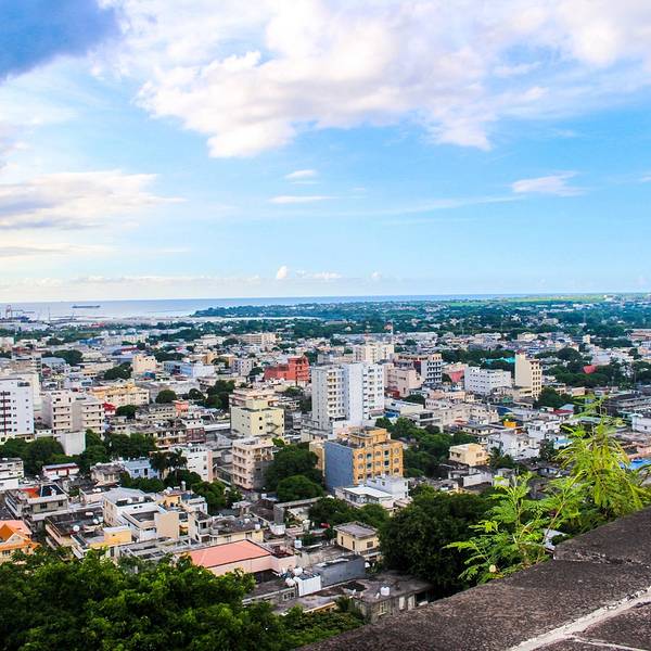 从东海岸到西海岸差不多要行车1个多小时,司机带我们到了市中心和炮台山。可以俯视到路易斯港东海岸的闲逛之后,前往了太阳集团西海岸的酒店蜜糖度假村。其实最心水的是爱周度假村,但是实在生意太好,预订的时候已经满房了。