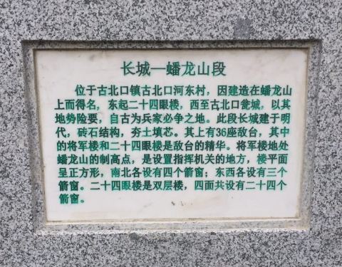 蟠龙山长城坐落在古北口镇附近,这里有一座古城,有“三碑、三庙、三城”, 还有有“城上城、城中城...蟠龙山长城坐落在古北口镇附近,这里有一座古城,有“三碑、三庙、三城”, 还有有“城上城、城中城、城套城”之说,也是我国唯一的城上之城。包括药王庙、财神庙、二郎庙、娘娘庙、九曲黄河阵、长城抗战纪念馆、...蟠龙山长城坐落在古北口镇附近,这里有一座古城,有“三碑、三庙、三城”, 还有有“城上城、城中城、城套城”之说,也是我国唯一的城上之城。包括药王庙、财神庙、二郎庙、娘娘庙、九曲黄河阵、长城抗战纪念馆、蟠龙山长城、令公祠。感觉还不错哦! 展开