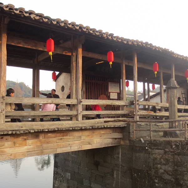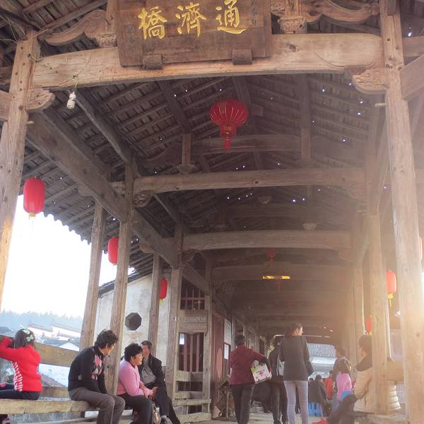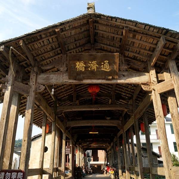 通济桥是婺源思溪村中的一个景点,桥最初建于1450年明朝景泰年间,当时出资建造的是思溪村村民集资建造的,建成以后不仅是村民休憩聊天的地方,也成为了整个村子的“新闻部”,村中有什么大事小事都可以在这里打听到,通济桥桥长22米,宽3.8米,桥身是廊桥结构,桥中还有村民供奉的保佑平安的菩萨,桥在建成后的五百多年来一直村中的交通要道,是因为是木质的,所以桥上有很多孩子的涂鸦,因为这里平时会有很多孩子玩耍,周边的风景也非常漂亮,桥下就是小河,充满了乡村的生活气息,在桥的一端还有一家茶店,可以在店铺中喝一杯茶,欣赏窗外的美景。 交通:在婺源县城老汽车站乘坐去清华方向的旅游中巴,在思口站下,行程约15分钟,车票5元。在思口距离村子还有一段距离,可以乘坐景区的电瓶车或者私人摩的到达思溪村。 住宿:村中有很多农家院,思溪古镇客栈,儒林堂客栈等,农家院中还有农家饭可以提供,价格非常实惠。 推荐美食:荷包红鲤鱼、土鸡、土鸡蛋、熏腊肉、茄子干、香菇干、霉干菜等。