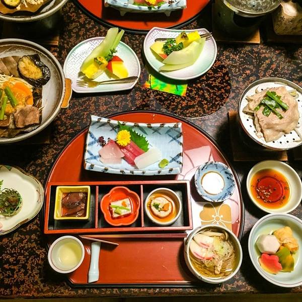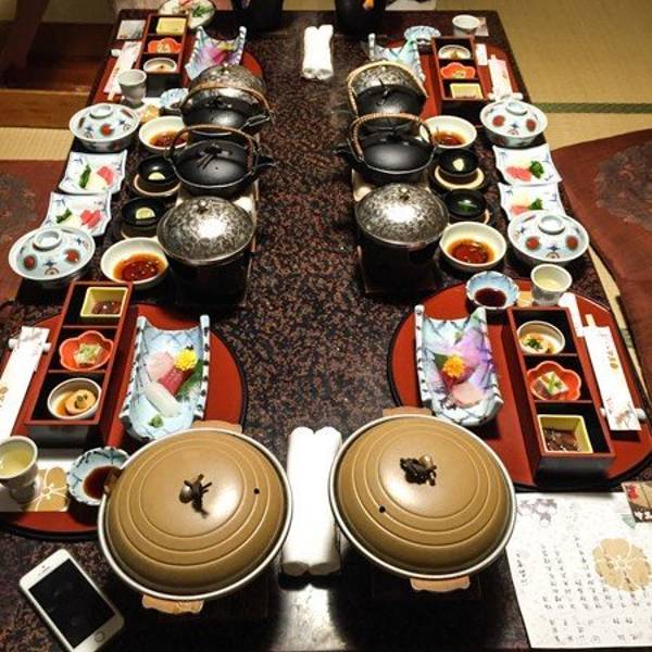 实用 期待已久的温泉料理终于来啦!泡温泉前一定要注意,必须先坐在小板凳上,用花洒洗净自己。超级丰盛!哇塞带我们看好房间以后就带我们回到1楼。指给我们看好温泉的方向以后就带我们用晚餐啦。期待已久的温泉料理终于来啦!!!!!!