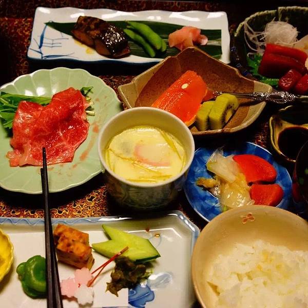 我们用餐的时候已久很晚啦,大约19:50。单独的一间榻榻米房间。哇塞。引入眼帘的是飞...带我们看好房间以后就带我们回到1楼。指给我们看好温泉的方向以后就带我们用晚餐啦。期待已久的温泉料理终于来啦!!!!!!