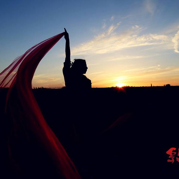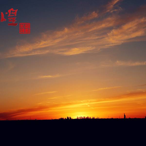 你看,那戈壁深处远山的剪影上的夕阳西下戈壁上夕阳如画 展开