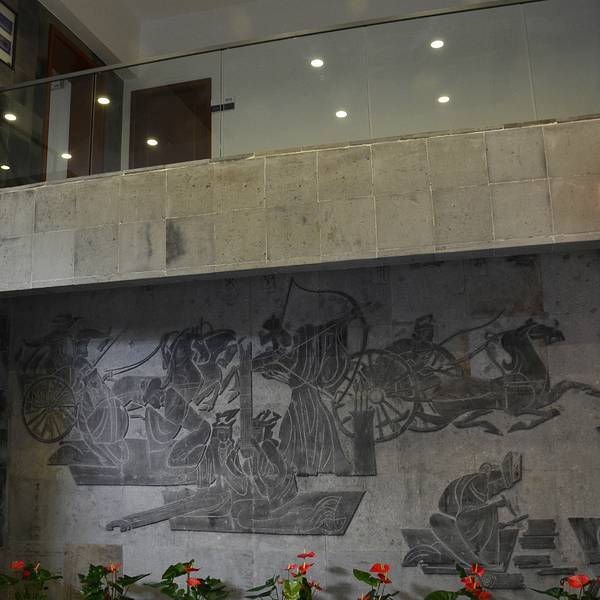 开放时间:9:30——16:30,这里是一个免费对外开放的景区,参观要出示本人身份证,老年人可带老年卡或高龄卡,如果带了包还需要通过安检进入大门,就看见墙壁上的石刻,春秋时期的人物和故事吴作人艺术馆占地约1430平方米,有楼上和楼下两层吴作人先生的头像艺术馆有吴家一门捐赠给家乡苏州的作品100多幅,有油画18幅、中国画17幅、书法15幅、速写水彩40幅关于吴作人先生的书籍一个意外的惊喜,就是在二楼上楼可以看到一个玻璃四边形窗户外面的双塔风景,宝塔如画建议游玩时:1小时