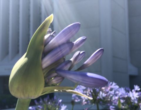 离家800米左右就是这个魔轮教教堂,总是远远的看到白色的建筑体和直插云端的尖顶,今天就徒步去一睹芳容,静谧的教堂花园花香四溢,建筑物宏伟神圣。3年前去过盐湖城的最大魔轮教教堂,最大的管风琴就在那里,与之相比这个显得灵秀俊美,值得期待。