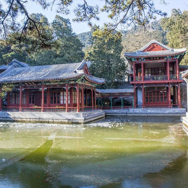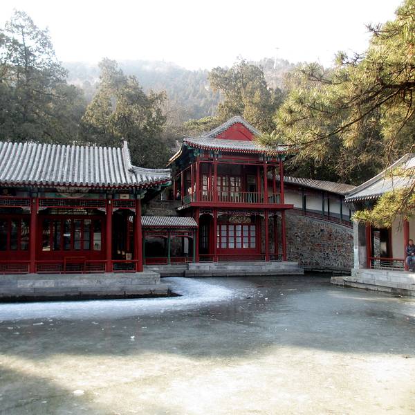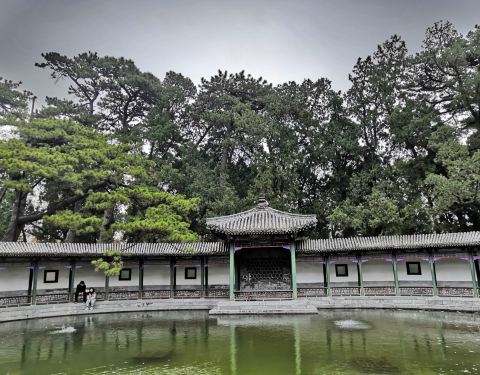 见心斋的主建筑,面向半圆形的回廊和水池,尽管没有皇宫的华丽与庄严,但在这郊野也别有一种韵味。建筑内保留不少彩画,尤其是人物画,惟妙惟肖,可细细欣赏。这里也是香山书院的所在地,偶尔也有规格较高的小型论坛活动在这里举办。实用贴士: