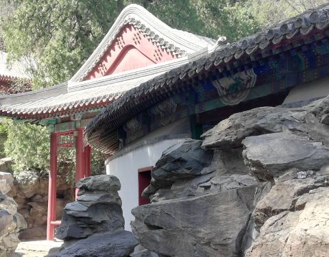见心斋是香山公园里一个很古老的宅子,宅院有围墙围着,宅内很是安静,雕梁画栋,朱红色黄梁,小湖里养着金鱼。宅外有多颗古树,衬托着这里的安静。