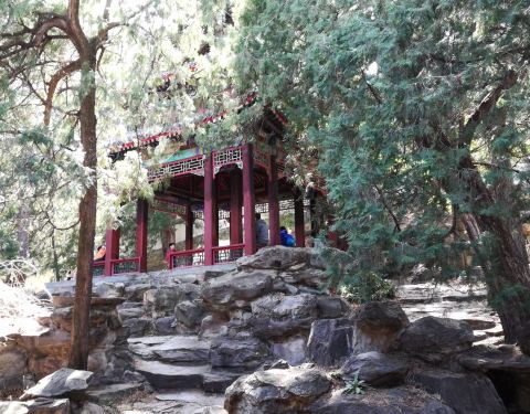 来见心斋,建议进香山公园后,走勤政殿--知松园--昭庙--见心斋--眼镜湖--索道--碧云寺线路。整体线路用时大约2小时;