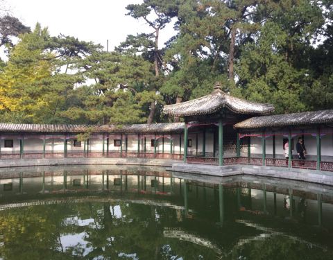 香山公园内的最有情趣的园中园,保存着明代建筑丰格,园中的一泓绿水和水中的红色的锦鲤相印,哪叫一个好看,亭台楼阁矗立水边,品茶听琴绝好去处。