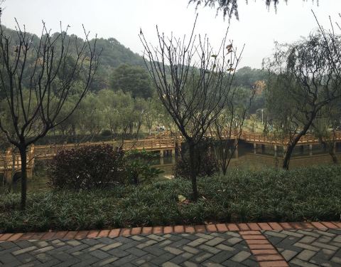 金鄂公园环境优雅,景致很好,树木很多,到处都是满眼绿色。