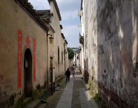 虽然取名为街,实际上,它只是条500米长的小巷子。斗山街有名的或不有名的文保单位很多,几乎都接踵分布着,行走在整齐的青石古道上,观赏着错落有致的百余幢徽州古典民居,欣赏着粉墙黛瓦、马头高墙,流连在雕梁画栋、古色古韵之间,不觉中已沉醉……