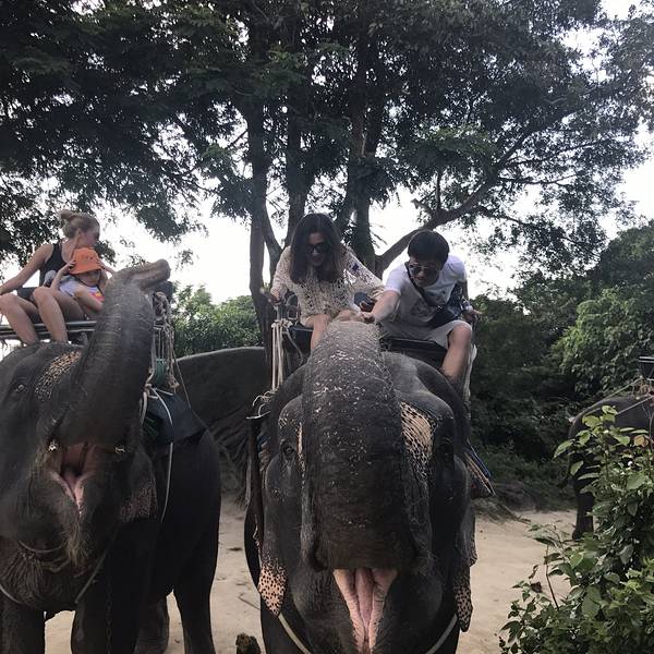 一头大象一般坐2人,如果有较小的小朋友可以3人一起坐同一头大象。