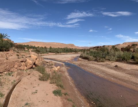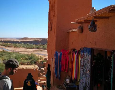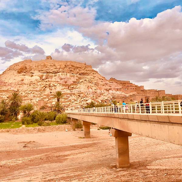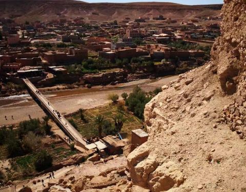 这座遗留下的村庄,原先住着当地的土著居民——柏柏尔人,如今在村落的周边依然可以看到这种阿拉伯族人的身影。即便这里在权游大火后依然是实行免费游览,站向山坡顶部俯瞰村庄,便可感受到此处荒凉寂寥,村庄既是美剧的“圣地”,也是国内电影《红海行动》的“战场”取景地,属于进入瓦尔扎扎特的必经之地。在走入阿伊特·本·哈杜村前需穿过一条小溪,走由小石铺成的桥路。有时会有当地的小孩在此段搀扶旅客过去后索要小费,虽说只是些零头费用,但这或许就是人们口中的摩式套路吧,若认为不必要,可在他们准备搀扶时直接拒绝。