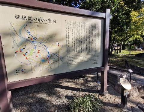 桶狭间奇袭战的历史发生地。桶狭间之战(日语:桶狭间の戦い)是一场发生于1560年(日本永禄三年)战国时代日本的战役。东海道大名今川义元亲自率军攻入尾张国境内,在今爱知县名古屋市一带,遭织田信长领军奇袭本阵阵亡。战后,原本称霸东海道的今川氏从此没落,而获胜的织田信长则在中日本和近畿地方迅速扩张势力,奠定其日后掌握日本中央政权的权力基础。桶狭间合战是日本战国三大奇袭战之一。