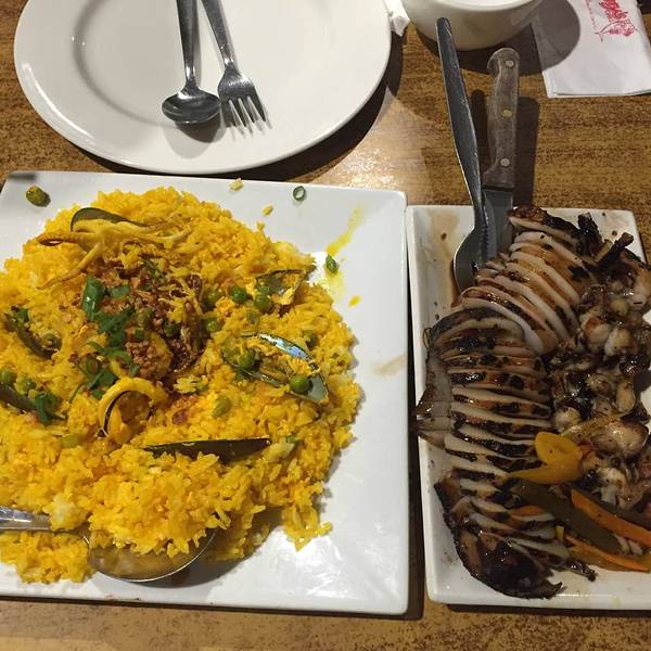 烤鱿鱼和烤鱼也是一绝啊!!好吃啊!SM和AYALA都有店,到了饭点儿也是人很多,但是东西都很好吃,主要是烤的东西,菜单上大部分都有图片,反正按照推荐的来都还挺好吃的,因为人多,所以上菜速度挺慢的。。。但是...
