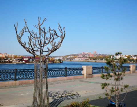 安加拉河是贝加尔湖的支流之一,也是唯一流出的支流,经过很多城市,伊尔库茨克是其中之一。安加拉河从贝加尔湖流出后,形成一个大的湖湾,号称伊尔库茨克海,也在这里形成风景宜人的景观,四季景色皆有不同。安加拉河河水清澈,河边时而有人散步,有人钓鱼,还有情侣拍摄婚纱照,非常舒适。游览伊尔库茨克的话,安加拉河是不可错过的一处景观。可以在这里乘船游览,或者沿着河边散步也非常惬意。隔水的栏杆上挂了很多同心锁,代表了人们的美好祝愿。如果你是冬季来到伊尔库兹克,清晨来到这里还可以看到水雾缭绕的景象,宛如仙境。