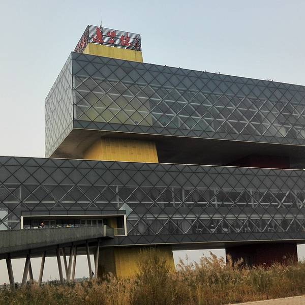 东营远望楼原名“东营生态之盒”,是黄河口生态旅游区游船码头的主体建筑,2010年7月建成的这幢现代化的建筑如今已成为东营市新的城市名片。