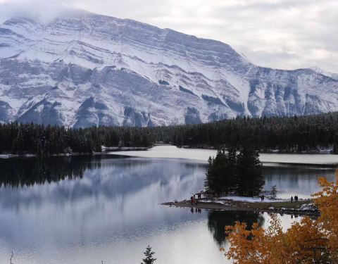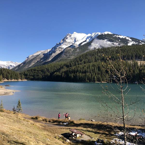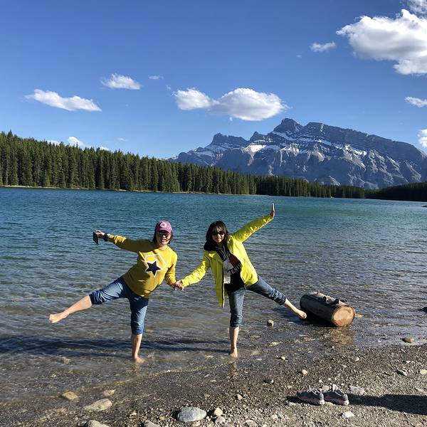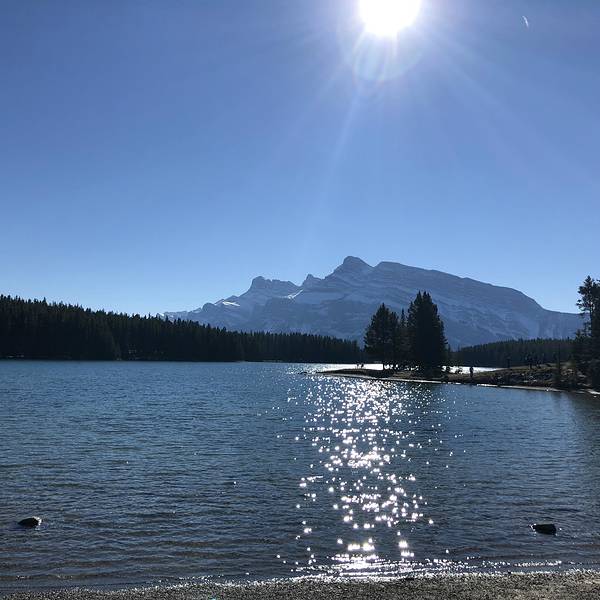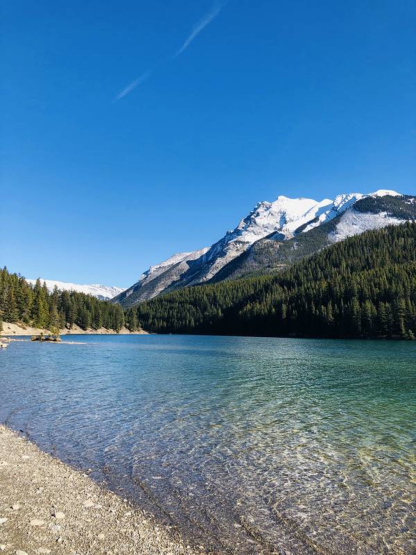 班夫里有好多漂亮的湖,其中双杰克湖和明尼万卡湖连在一起,距离班夫镇十几分钟,一个上午就可以逛完。推荐的路线是先去双杰克湖,再去明尼万卡湖,因为可以开车经过一条很漂亮的观景公路,从不同的角度看双杰克湖和明尼万卡湖。