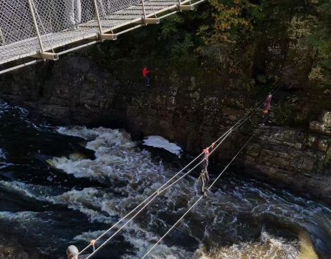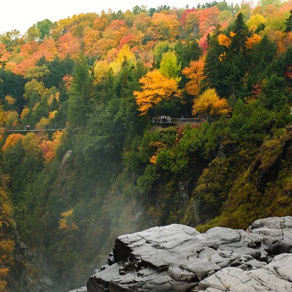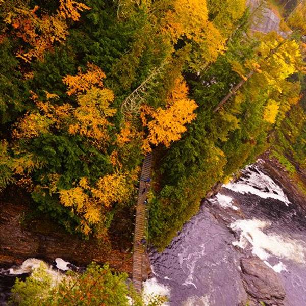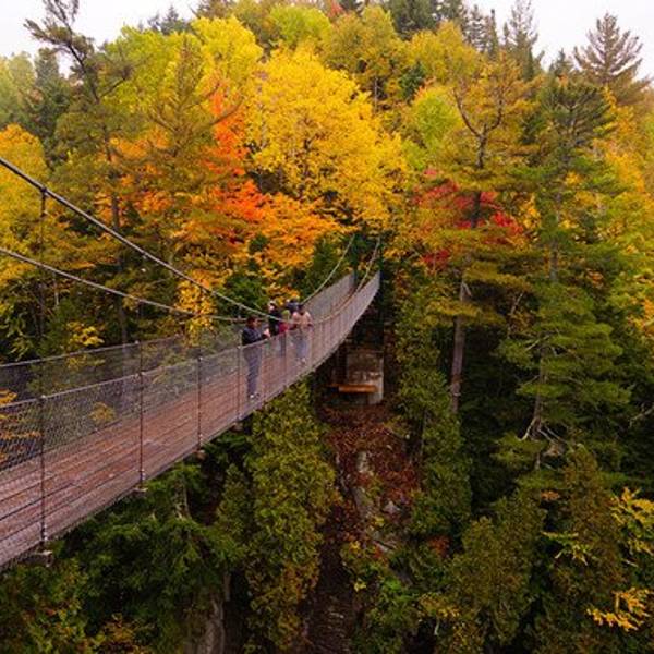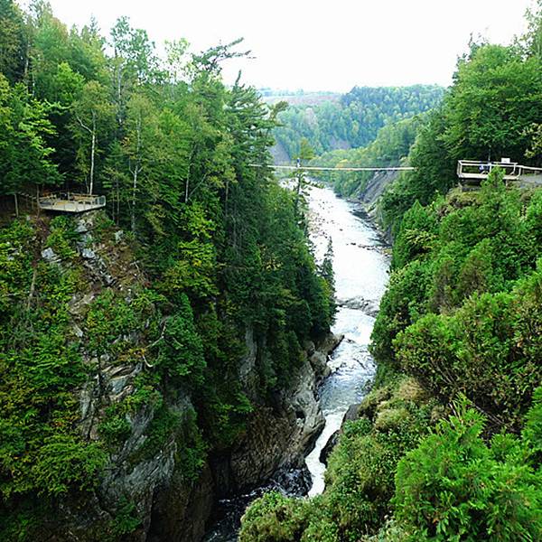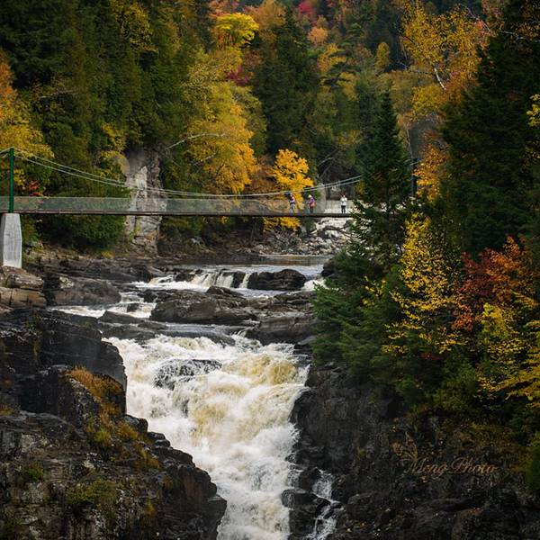景点设计完善,一共造有三座不同高度的吊桥,可以让游人从不同角度欣赏这座美丽的峡谷。门票$13.5/人圣安妮大峡谷是距离魁北克城40公里的一个沉积岩峡谷,开车需40分钟。秋天的时候,来自各地的游客络绎不绝。峡谷两边金黄的树叶是壮观瀑布最好的点缀,磅礴的水流时刻冲刷着有着12亿年历史的石床。门票$13.5/人。...圣安妮大峡谷是距离魁北克城40公里的一个沉积岩峡谷,开车需40分钟。秋天的时候,来自各地的游客络绎不绝。峡谷两边金黄的树叶是壮观瀑布最好的点缀,磅礴的水流时刻冲刷着有着12亿年历史的石床。门票$13.5/人。景点设计完善,一共造有三座不同高度的吊桥,可以让游人从不同角度欣赏这座美丽的峡谷。第一座吊桥:经过第一座吊桥后会有两个观景台,可以眺望第二座吊桥和对面的风景。第二座吊桥最刺激,又高又会摇晃,但也最上镜。第三座吊桥在峡谷底部。走到第三座吊桥上从下往上看更有冲击感,能直观得感受到这个高度落差。除了通往第三座吊桥的楼梯,其余都是平坦的步道。除了走路,峡谷还提供空中滑索和攀岩。胆子大的可以尝试一下。 展开
