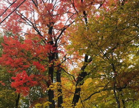 其实,去峡谷的路上非常美,色彩斑斓,反而峡谷里一般了。今年加东天气异常,到了蒙特利尔竟然30度今年加东天气异常,到了蒙特利尔竟然30度!想,这下完了!枫叶看不到了吧,不过魁北克好很多。其实,去峡谷的路上非常美,色彩斑斓,反而峡谷里一般了。