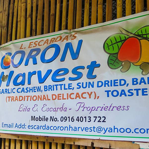 如果来巴拉旺的科伦度假,腰果是最好的伴手礼了,巴拉旺最好的腰果在科伦,而Lauro Escarda夫妇的Coron Harvest腰果工厂则是购买腰果的最好选择。工厂位于巴拉旺科伦的巴朗圭,当地的名人和媒体人照片贴满了墙壁,小而多彩的等候区里全是玩具。 这里的腰果都是雨养、家庭种植,并且有多种口味可选,包括蒜味、自然风干口味、甜酥风味(蜂蜜制成)、焦糖风味(Bandi,最传统的做法)和烤制风味。