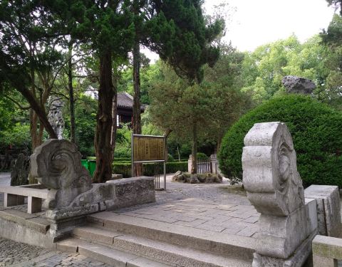 位于灵岩山上,山门朝南,俯临太湖。大雄宝殿右边是个花园”吴中胜迹”。