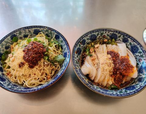 在云南昆明到处都有八街凉卷粉这种招牌店,但是正宗的还要到八街古镇里来吃。九月初去那里,正是红梨采摘节