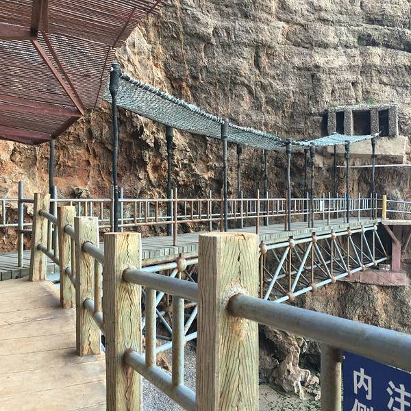 如果是从蓬莱阁那边乘坐索道过来的话,就是从合海亭这边开始走栈道。整个栈道全长才220米,但是由于形势险峻,步履艰难,全程走下来相当于爬...田横栈道是田横山景区里面的必游景点,很多人都是冲着田横栈道去的。