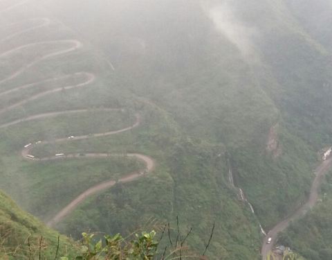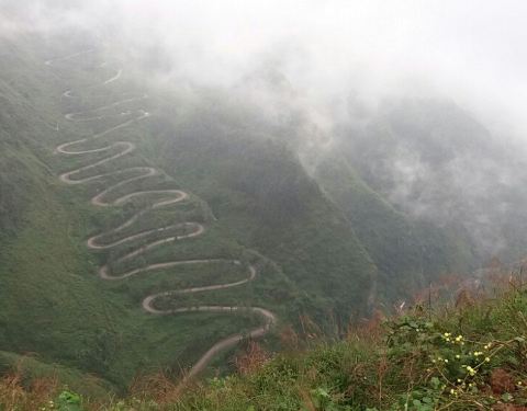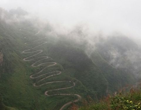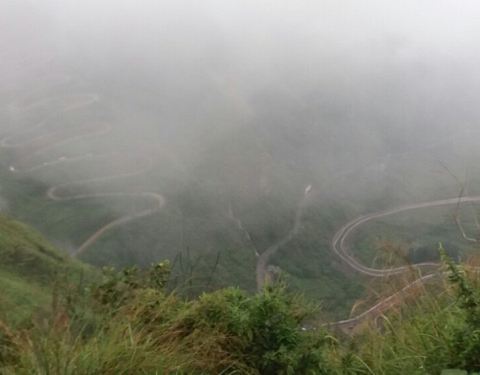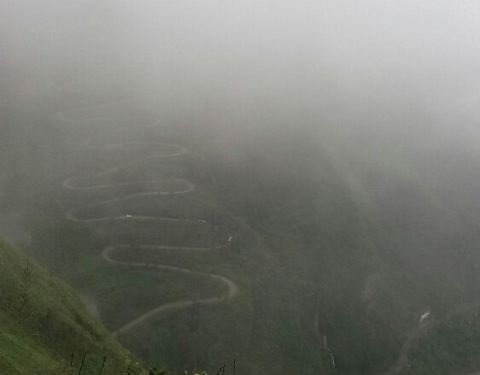 晴隆古城停车场24道拐的宣传画,要买85元的门票,去到另外一个山顶才能看到这样的场景,今天雨雾看不到11月11日,前往著名的抗战公路——晴隆史迪威24道拐公路