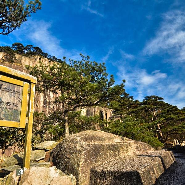 黄山白云景区由黄山西大门内的钓桥庵沿白云溪向东,经石人峰、石柱峰、石床峰,长达15里的新铺阶梯...黄山白云景区由黄山西大门内的钓桥庵沿白云溪向东,经石人峰、石柱峰、石床峰,长达15里的新铺阶梯通过谷底,一直延伸到天海中海亭,上下高差1000余米。