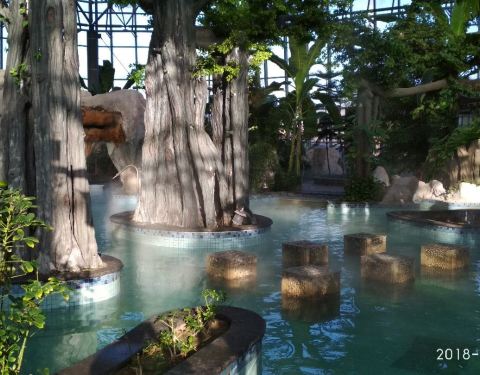 温泉很大,室内外池子都不少,孩子玩儿的地方也大,挺好,而且服务人员态度也很好,回答问题很耐心,中间还有自助茶歇,很满意。