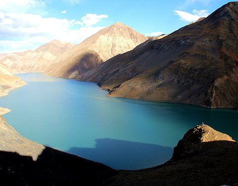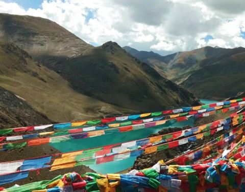 也就是在上山的过程中发生了阿加西被超大讲吐的故事,一件不解之谜。一处水库,也就是高山堰塞湖。斯米拉神山飘逸的经幡