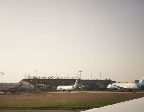 航站楼是新修建的,然后坦桑尼亚还在这里拍了新的国家宣传片呢,不错的,就是航空配餐,真的不太好吃,我个人吃了两口就不在吃了。 - 新修建的机场,非常好,还有廊桥,原来的T1航站楼没有廊桥,都是小飞机