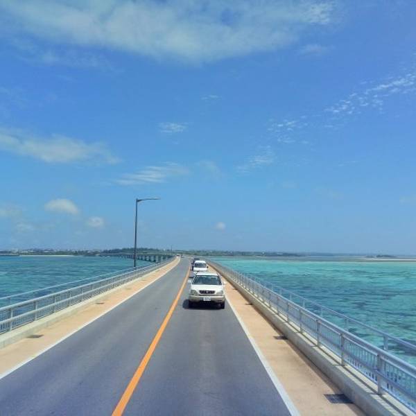 此时此刻,必须装逼。车辆穿行在桥上,看着两侧闪退的蓝色的海面,就感觉自己是在海上穿行一样伊良部大桥,宫古岛的另外一座跨海大桥。车辆穿行在桥上,看着两侧闪退的蓝色的海面,就感觉自己是在海上穿行一样。