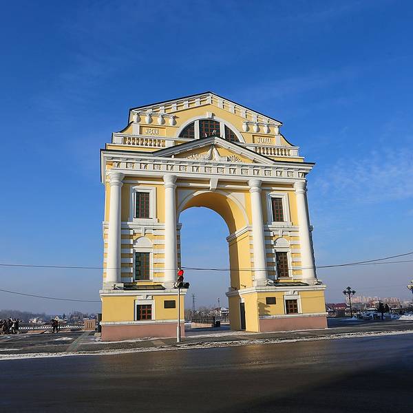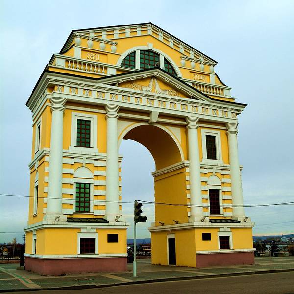 伊尔库茨克的凯旋门看上去高大威武,它是沙皇三世主持修建的,建筑给人一种西欧建筑的感觉伊尔库茨克的凯旋门看上去高大威武,它是沙皇三世主持修建的,建筑给人一种西欧建筑的感觉。它距离基洛夫广场很近,历史还是很悠久的。