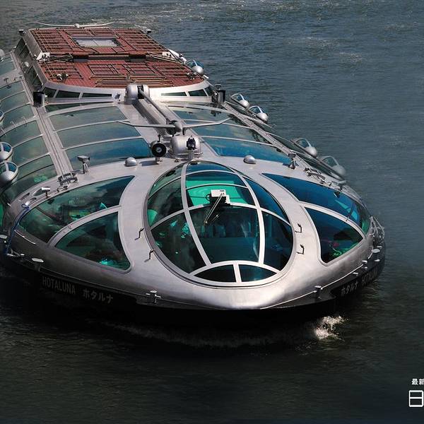 继日本人气观光船“HIMIKO”号推出8年后,TOKYO CRUISE公司又推出了一款全新的观光船——“HOTALUNA号”,新船造型酷似宇宙飞船,在银色金属的流线型船体上保留了鸥翼形的大门。在船顶上增加了甲板,游客可以站在船外欣赏美景了。另外船后方的玻璃可以放出淡淡的光芒,夜幕降临时,HOTALUNA号就像一只萤火虫为隅田川增添一丝光彩。 展开