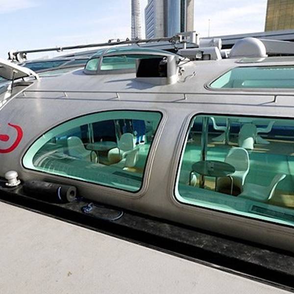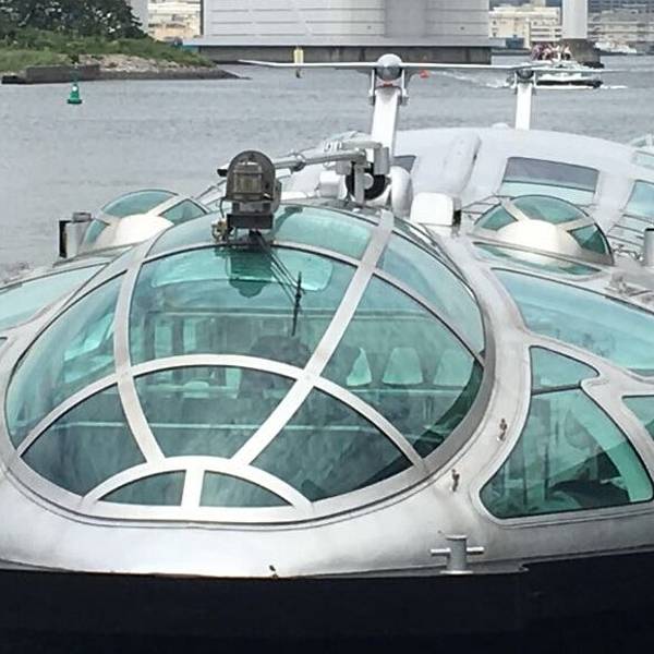 坐上水上巴可以让人享受一种穿梭于水面之上的轻松愉悦,更是能够从不同的侧面和不同的视角去欣赏东京的美丽景色。我们所乘坐船只ヒミコ是由著名漫画家松本零土来设计的,外观很漂亮特别,极具科幻感。