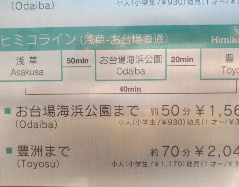 1、浅草→台场海滨公园(途经日之出栈桥)