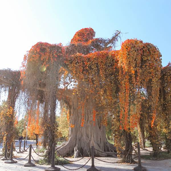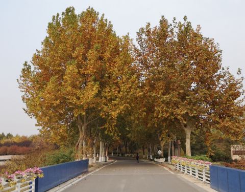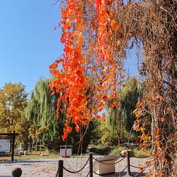 高达15米,直径50厘米的大榕树有上千年的树龄,干枯的树干与北方的冷空气抗衡着,现在的它更像是一个屹立不倒的支架,垂下的红叶,又给他换上了秋日艳丽的衣裳,秋日的阳光,洒在身上,整个人都温暖了起来,坐在被片片落叶覆盖的长椅上,静享这一抹醉人的秋色,这古老的白蜡树也毫不逊色,为花钟路添了浓墨重彩的一笔,吸引无数游人合影留念 展开